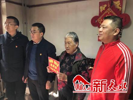 新天水讯【天水晚报记者张玉平】近日,秦州区石马坪街道南一社区与结对单位天庄高速公路管局开展“邻里互助、邻里守望”活动,对辖区的困难群众走访慰问,把米、面、油和现金送至困难居民手中,在这寒冷的日子为居民送上祝福。