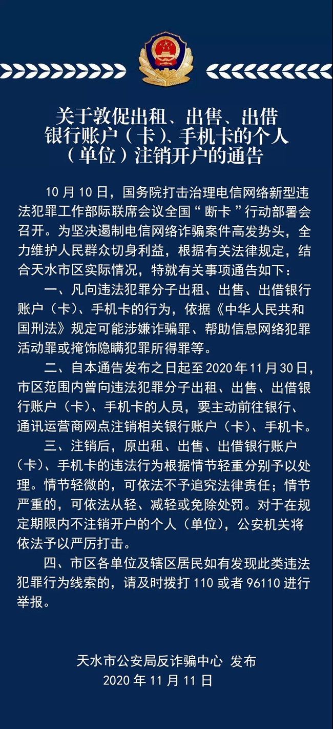天水警方发布最新通告