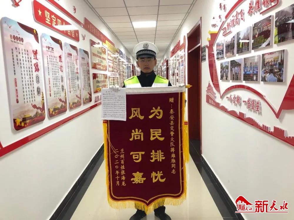 新天水讯 【记者 王晓华】11月5日上午,一个装有“为民排忧 风尚可嘉”的锦旗和一份感谢信的包裹被送到秦安县公安局交警大队,这份特殊的礼物是谁寄来的呢?拆开这个包裹,民警才得知缘由。
