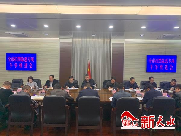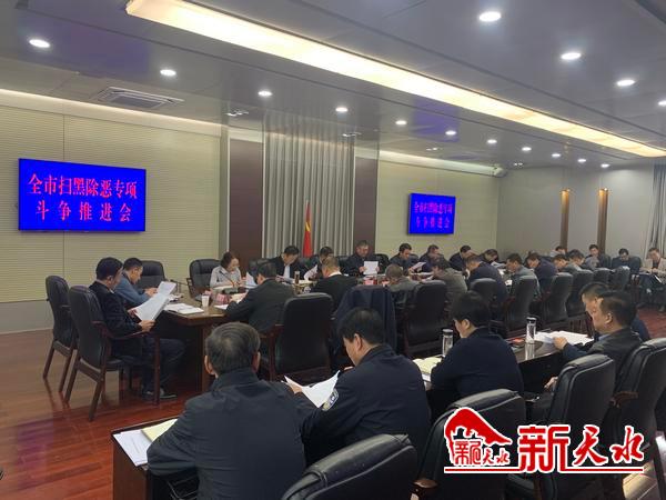 新天水讯【记者童强】11月12日,市委常委、政法委书记、市扫黑除恶专项斗争领导小组常务副组长蒲军主持召开全市扫黑除恶专项斗争领导小组推进会,学习传达全国全省扫黑除恶专项斗争领导小组有关会议和市委常委会会议精神,总结专项斗争成效,分析研判当前工作形势,并对当前和下一阶段重点工作进行再安排、再部署。