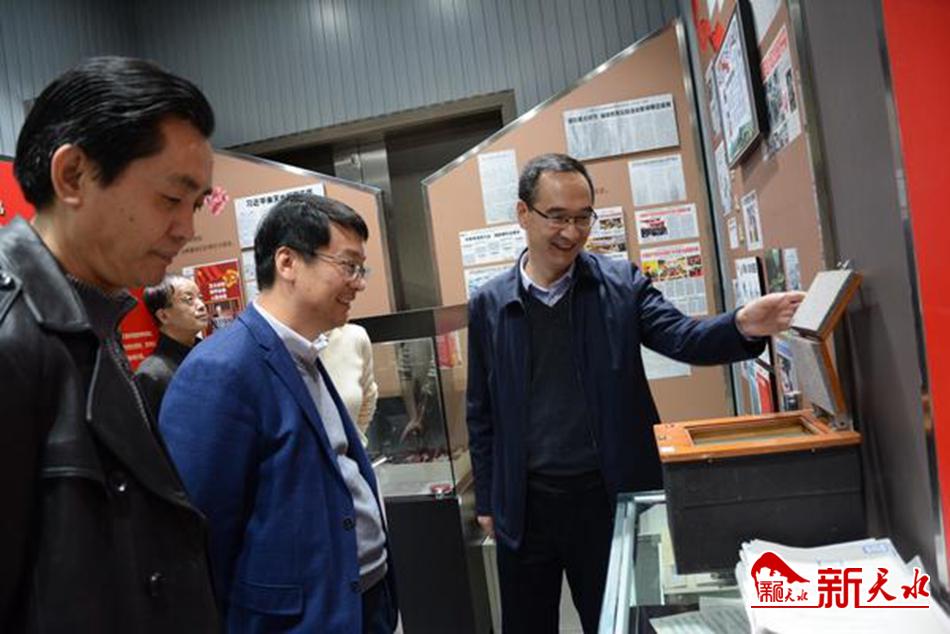 天水师范学院考察组一行先后参观了天水日报社全媒体采访中心、天水日报社新媒体实验室及天水日报社报史馆等,详细了解了媒体融合发展情况,见证了天水日报复刊以来的发展历程和历年来天水日报的优秀代表作品和历史老照片、老物件。