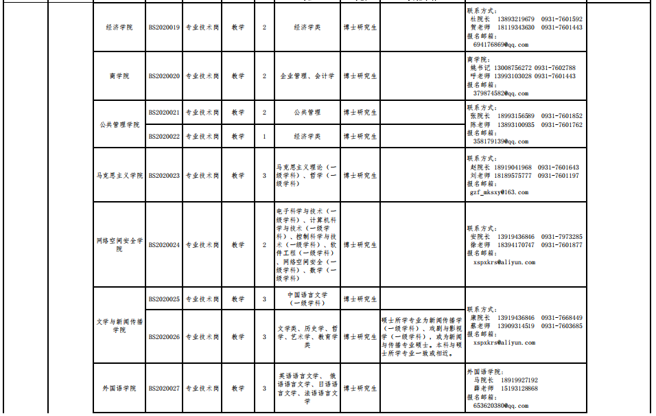 甘肃政法大学2020年公开考核招聘博士研究生公告(三)