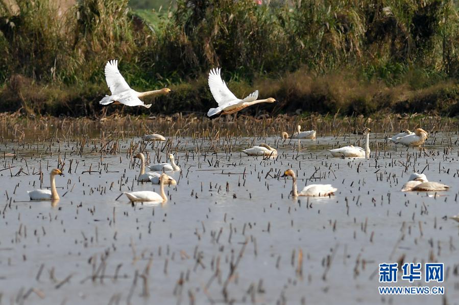 这是11月11日在湖南西洞庭湖国家级自然保护区拍摄的候鸟。新华社记者 陈思汗 摄