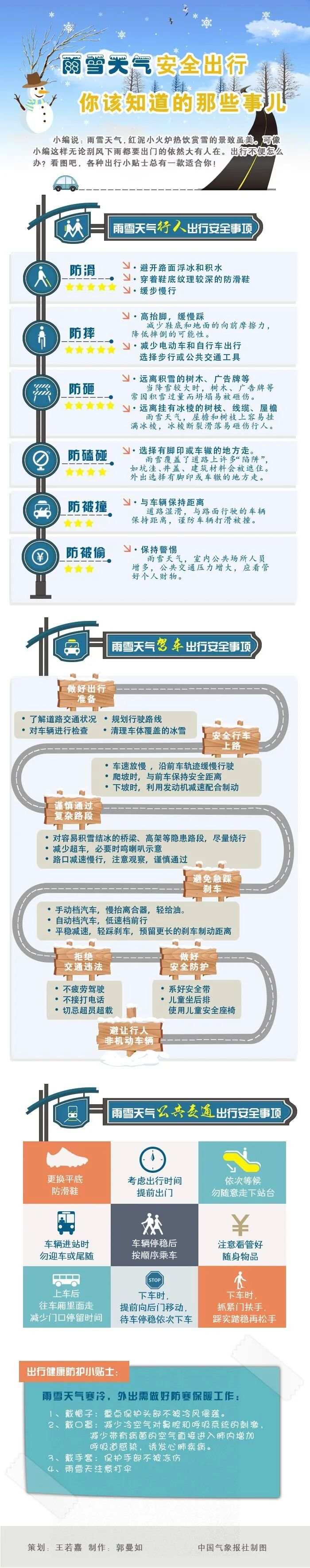 气象专家提醒:此次雨雪过程影响范围广,且具有一定的极端性,上述地区的公众需提高警惕,注意防范雨雪导致的道路湿滑、结冰以及低能见度天气对交通出行的不利影响。