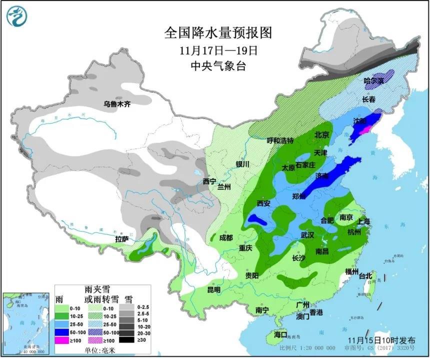 根据中央气象台的预报,11月17日至19日,我国中东部地区将迎来一轮大范围强雨雪、大风降温天气。