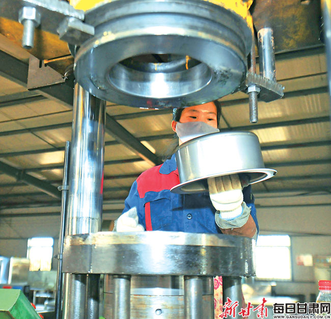 海斯特不锈钢制品公司不锈钢锅生产现场。