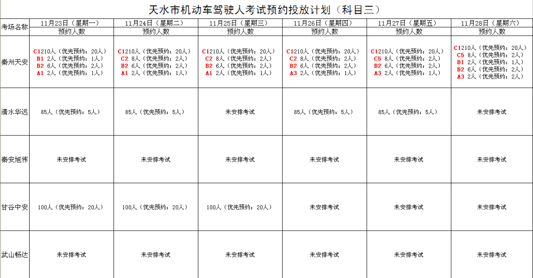 天水机动车驾驶人考试计划公告