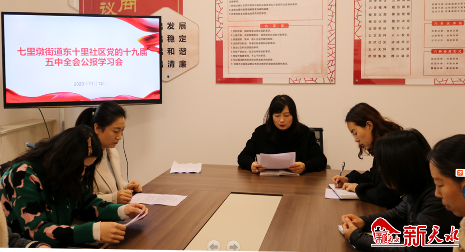 新天水讯11月12日,秦州区七里墩街道东十里社区党委组织全体党员干部学习了党的十九届五中全会公报。