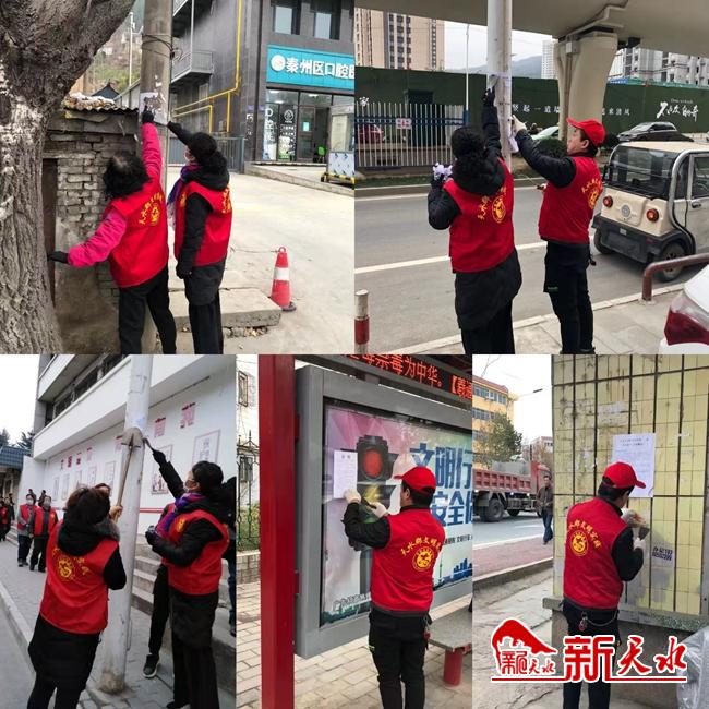 新天水讯(通讯员韩雪梅)11月20日上午,瀛池社区文明实践站组织志愿者在辖区以及各小区开展环境卫生整治活动,为做好以“捡拾一个烟头、清扫一处垃圾、清除一块牛皮癣、消除一处痰迹、擦拭一处污秽、摆放一辆非机动、劝导一个不文明行为”为主题的环境整治和不文明行为劝导活动。。