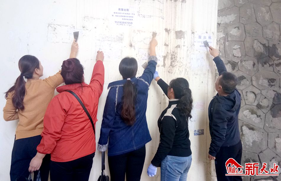 新天水讯 11月20日上午,秦州区七里墩街道七里墩社区新时代文明实践站组织社区党员、居民志愿者30余人,在天河家园开展了沿街“小广告”集中清理活动。