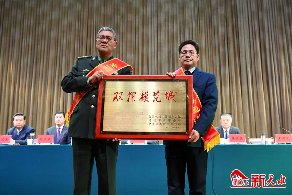 大会举行了天水市荣获全国双拥模范城“六连冠”迎牌仪式,命名了全市双拥模范乡镇(街道),表彰了全市双拥工作先进单位、先进个人和首届天水最美拥军人物,安排部署了当前和今后一个时期的双拥创建工作。