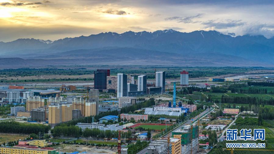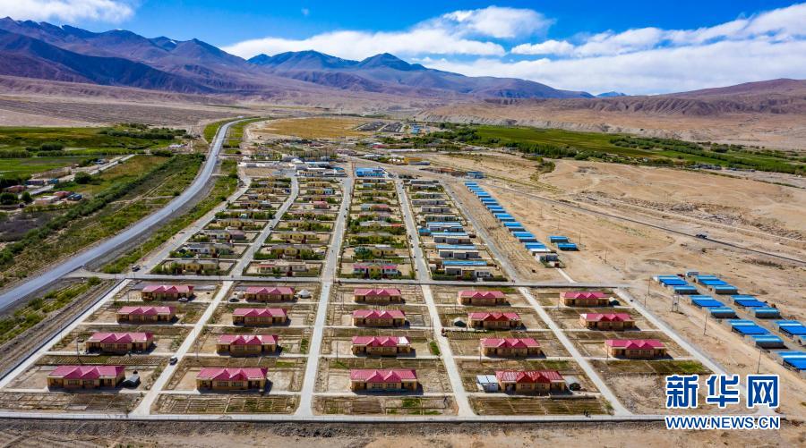 这是2019年8月9日拍摄的新疆阿勒泰地区青河县易地扶贫搬迁安置点阿格达拉镇。新华社记者 沙达提 摄