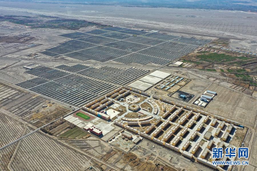 这是新疆阿克陶县易地扶贫搬迁点的阿克陶县现代设施农业产业扶贫基地和阿克陶县昆仑佳苑小区(3月22日摄,无人机照片)。新华社记者 丁磊 摄