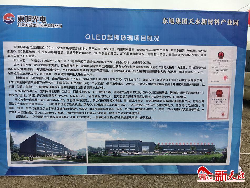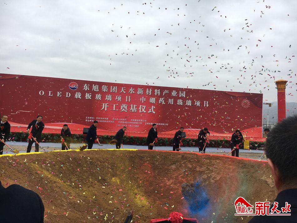 新天水讯【记者王晓馨】11月24日上午,东旭集团天水新材料产业园OLED载板玻璃项目、中硼药用玻璃项目奠基。这是我市贯彻落实中央“国内大循环、国内国际双循环”重大战略决策的重要举措,标志着我市在发展新材料产业、补齐产业短板、延伸和完善产业链方面迈出了坚实一步。