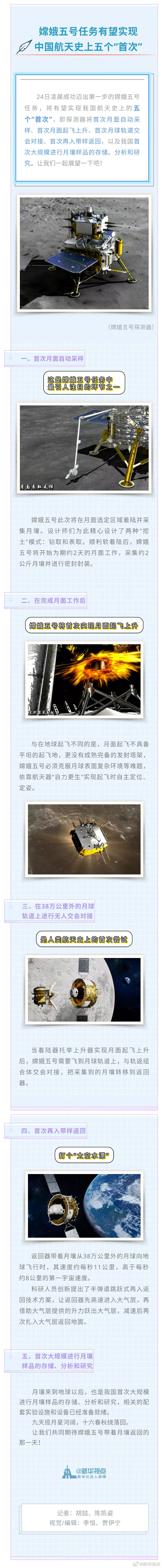 嫦娥五号任务有望实现中国航天史上五个首次