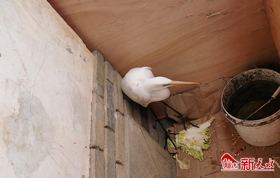 当天上午10时30分许,安伏派出所接到村民杨某报警,称他在安伏镇杨寺村河畔地里干农活时,发现一只翅膀受伤不能飞的“大白鸟”,他怕处理不好,就把大鸟抱回家,然后报警求助。