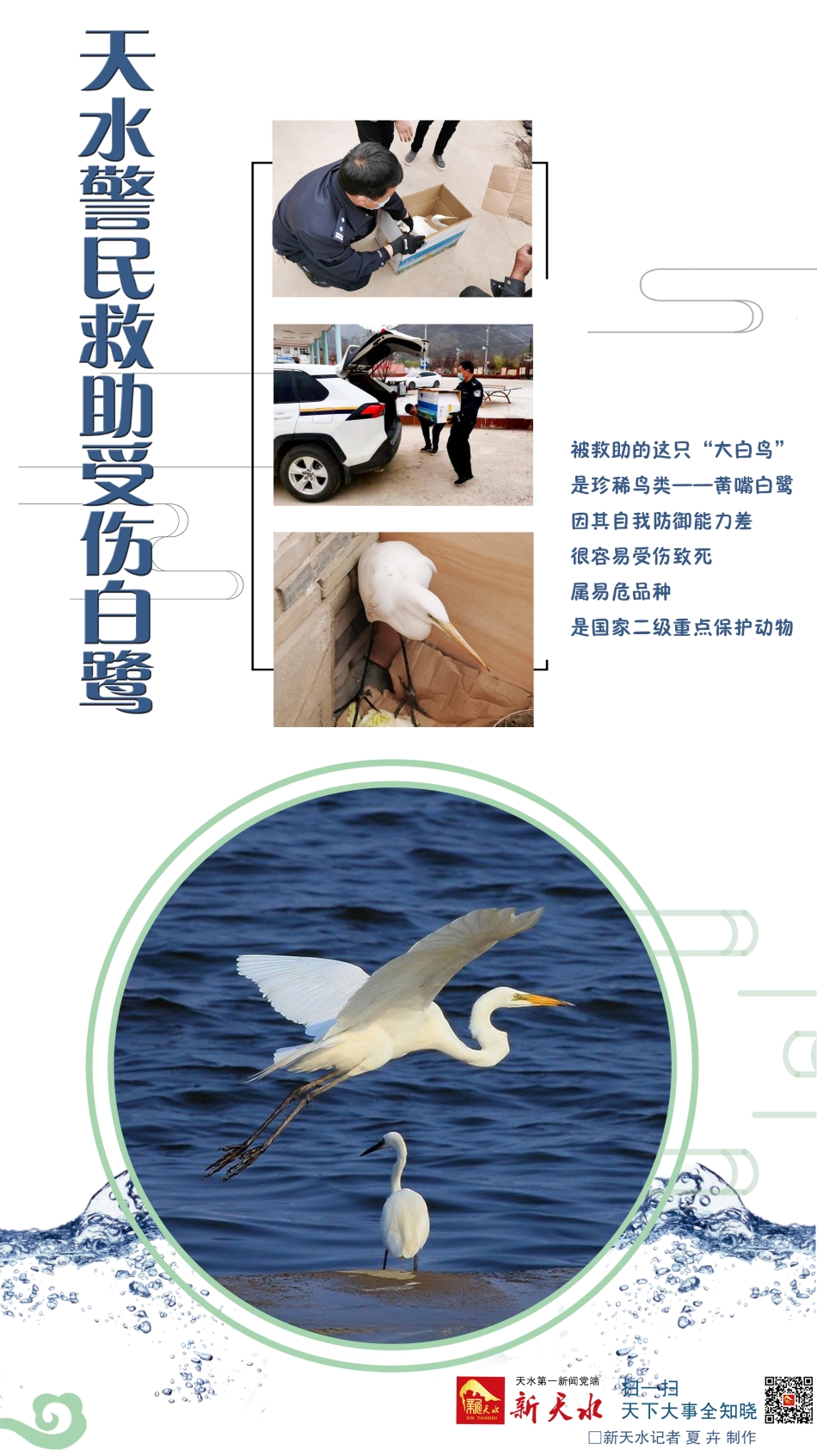 新天水讯【记者 王晓华】11月17日中午,秦安县公安局安伏派出所与森林公安民警、杨寺村村民联手救助了一只受伤的国家二级重点保护动物白鹭。