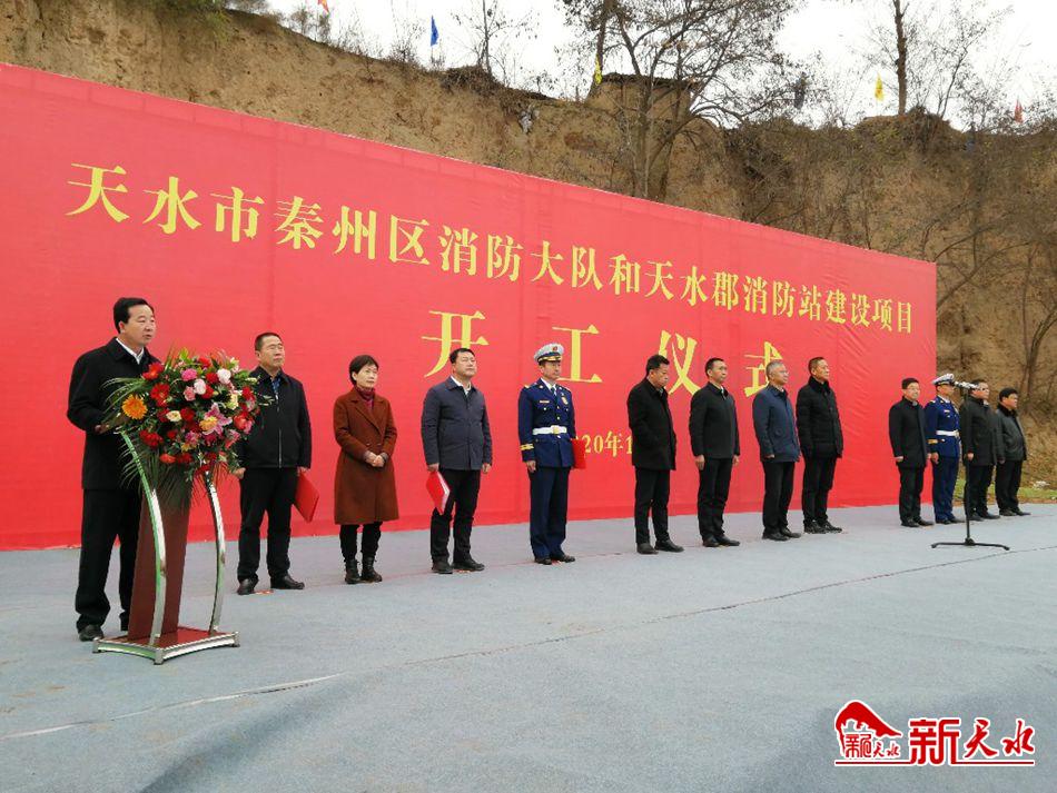 新天水讯【记者蔚军平】11月26日上午,秦州区天水郡消防站重建项目奠基开工仪式在太京镇赵家崖举行。市委常委、常务副市长赵四辈出席仪式并宣布项目开工。