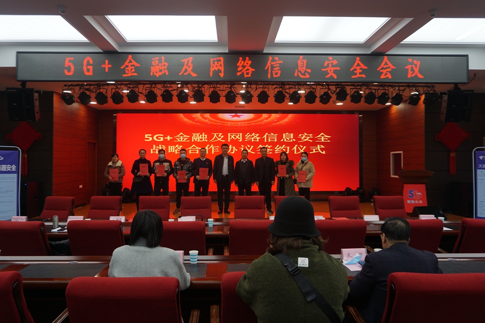 会上,中国人民银行天水市中心支行就防范新型网络诈骗、推进“断卡”行动的讲解。中国电信集团天翼云西北中心培训技术专家对5G+网络信息安全知识进行培训。天水电信与现场参会8户中小微企业代表签署了5G+战略合作协议。