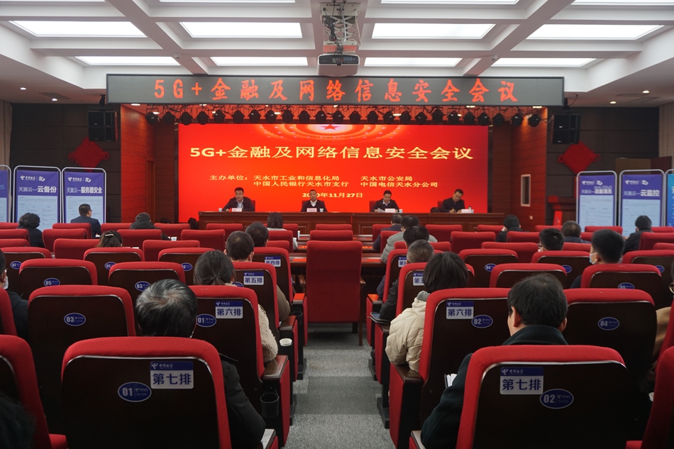 新天水讯 11月27日,天水电信联合市工信局、市公安局、人行天水市中心支行举办5G+金融及网络信息安全会议,全市70多家企业负责人参加了会议,会议旨在贯彻党的十九届五中全会精神和习近平总书记关于金融和网络信息安全的重要指示精神,落实全国、全省“断卡”行动电视电话会议工作安排,提高金融机构和中小微企业网络信息安全水平。