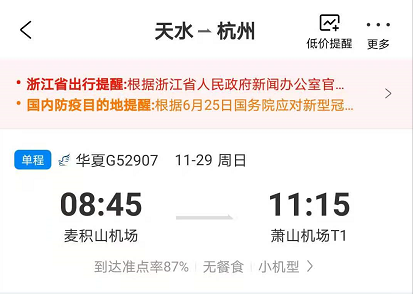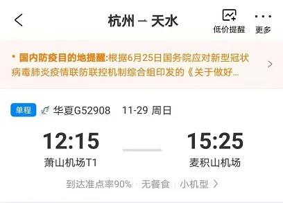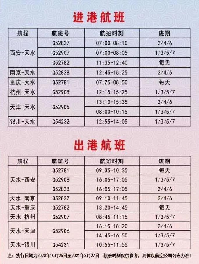 11月29日起,天水机场“天水=杭州、天水=西安”航班恢复正常!