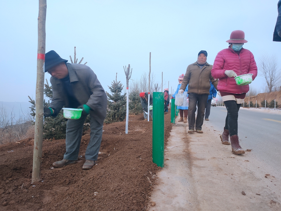 温暖过冬天!秦安县西川镇村民为行道树刷白