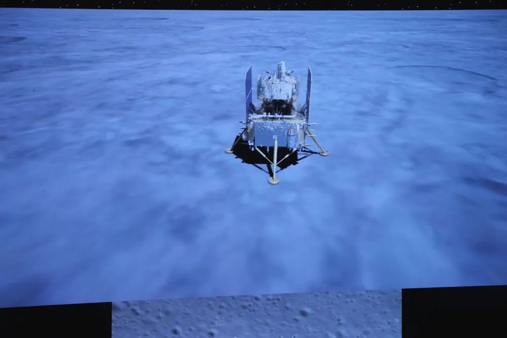 ↑这是12月1日拍摄的嫦娥五号探测器着陆画面(新华社记者 金立旺 摄)