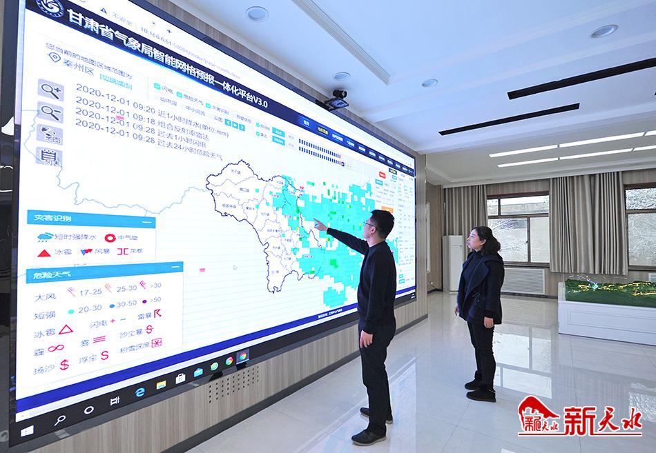 12月1日早晨刚上班,秦州区气象局副局长吴婷芳就来到气象服务业务平台,向24小时业务值班员李晓鹤了解当日凌晨开始的降雪情况。副局长张浩良开启大屏幕,在省—市—县气象会商高清视频系统中分析卫星云图、查看雷达回波图走势,结合实时气象要素数据,组织业务人员开展天气会商,制作发布天气预报。