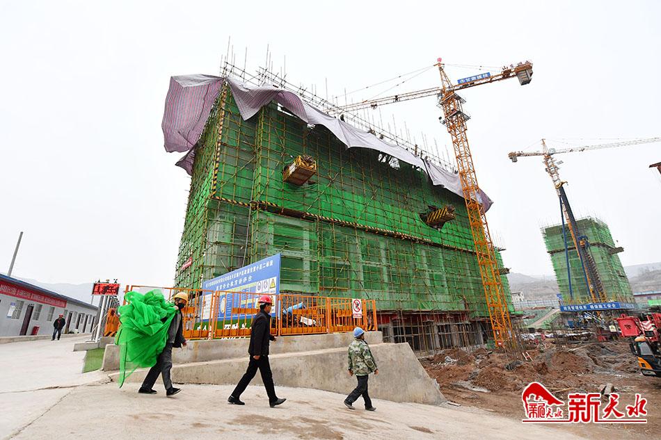 连日来,在秦安县城北片区棚户区改造安置小区项目施工现场,施工人员正在加紧作业。