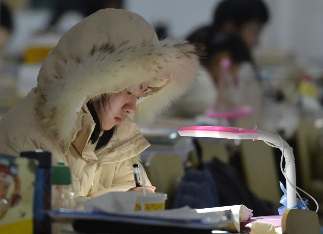 △12月4日,安徽省阜阳师范大学西湖校区,准备参加研究生招生考试的学生在认真备考。