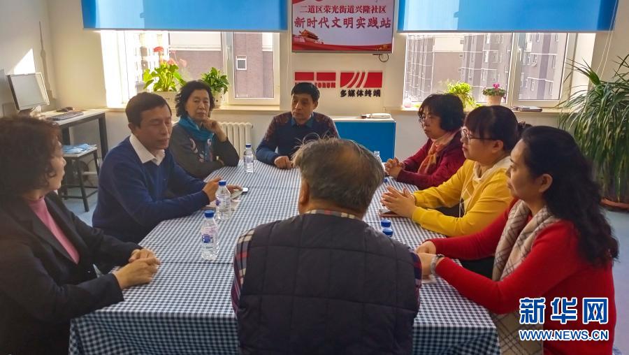 在长春市二道区荣光街道兴隆社区新时代文明实践站,社区工作人员分享关于党的十九届五中全会精神的学习体会(12月4日摄)。新华社发