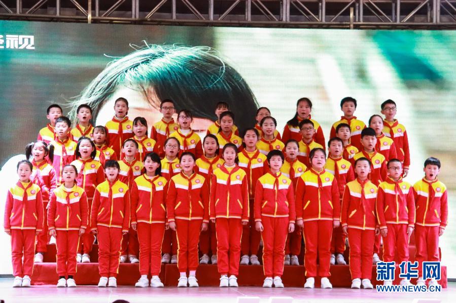 12月7日,学习宣传党的十九届五中全会精神“2035,你在哪里”湖南省青少年主题对话活动在祁东县启航学校启动。这是学生在活动现场表演合唱。新华社发