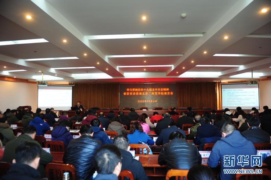 湖北省委宣讲团成员、武汉大学马克思主义学院院长佘双好教授在湖北第二师范学院宣讲党的十九届五中全会精神(12月4日摄)。新华社发