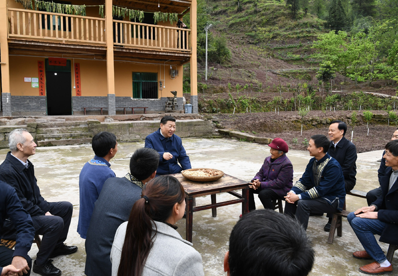 2019年4月15日,习近平在重庆市石柱土家族自治县中益乡华溪村同村民座谈。