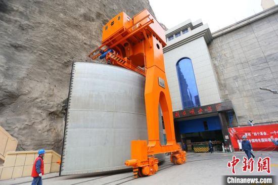 图为刘家峡水电厂检修人员转运机组闸门。(资料图) 高展 摄