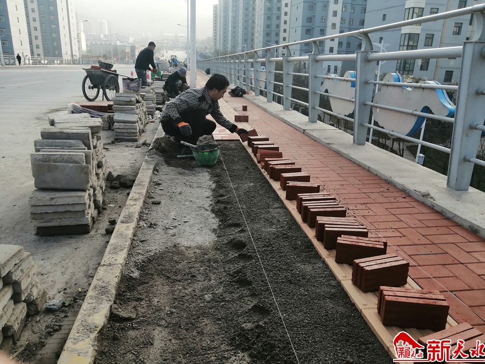 秦州区孙家坪路以及孙家坪大桥是连接成纪大道和羲皇大道的重要通道,12月10日,记者在孙家坪大桥西侧的人行道改造铺设现场看到,施工人员正在铺设陶土砖,为确保11日完工而加紧收尾作业。人行道改造铺设施工于11月8日开始,原本计划在11月底完工,受降雪天气影响,直至12月11日完成铺设。