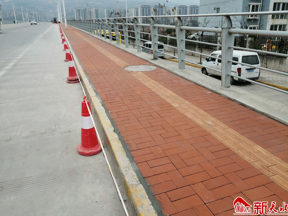 记者从秦州区住房和城乡建设局了解到, 孙家坪大桥人行道长310米,每侧宽度2.05米,原桥面人行道砖为广场砖,为提高行人通行防滑性和舒适性,此次人行道改造采用了陶土砖。除了对原人行道进行改造铺设外,秦州区住建部门为了解决桥面上夜间通行亮度不够问题,对大桥路灯也进行了改造。