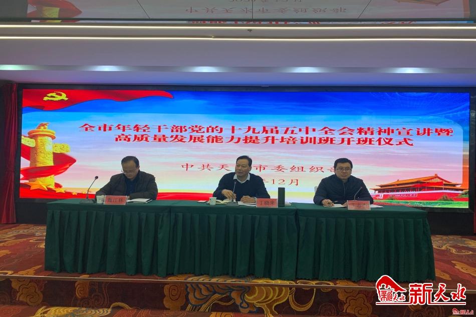 新天水快讯【记者 童强】12月15日,由天水市委组织部组织举办的全市年轻干部党的十九届五中全会精神宣讲暨高质量发展能力提升培训班开班。市直部门单位、各县区年轻干部代表70余人参加开班式。
