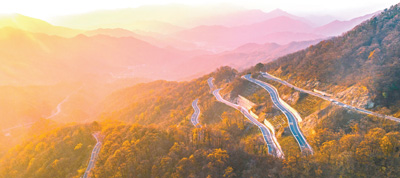 中国安徽省六安市金寨县马鬃岭的秀美风景吸引众多游客自驾观光游览,有效带动当地旅游扶贫产业及休闲农业发展,走上脱贫增收的致富路。 人民视觉