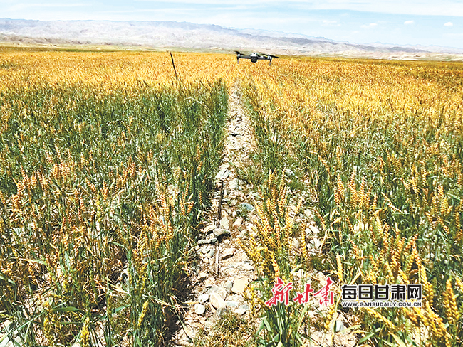 小麦田间无人机喷药。甘肃省农业农村厅供图