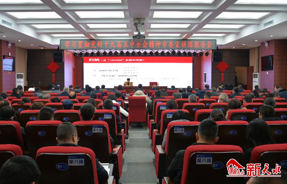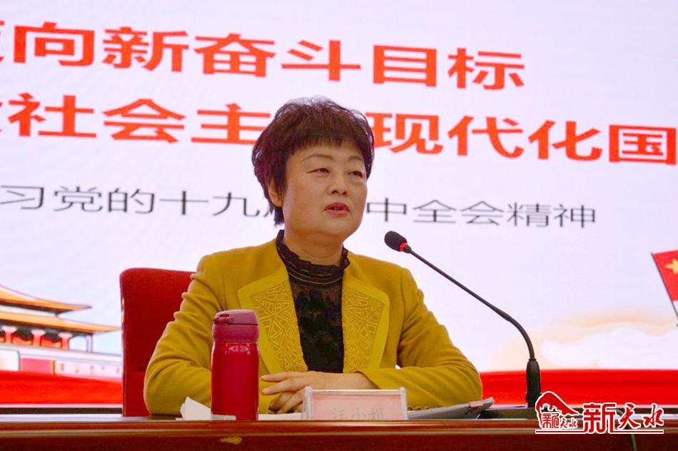 新天水讯【记者 张彬霞 见习记者 赵超】12月17日,副市长汪小娟为分管部门班子成员及干部职工代表宣讲党的十九届五中全会精神。
