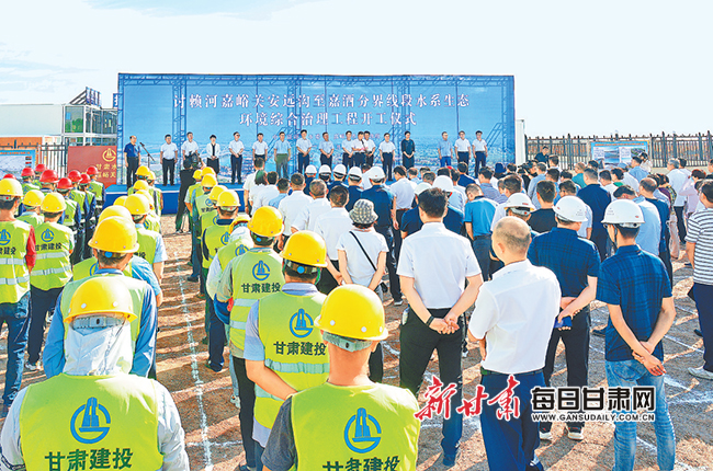 讨赖河嘉峪关安远沟至嘉酒分界线段水系生态环境综合治理工程开工仪式现场。