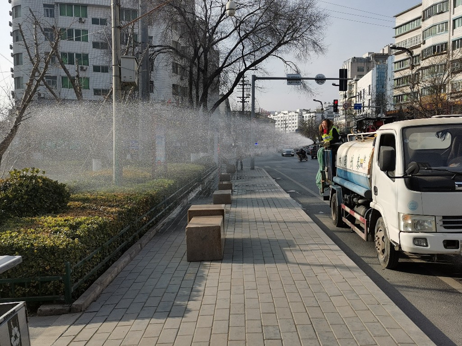 12月31日,园林工人正在秦州区新华路三角花园段为路边绿化带苗木浇水。冬季天气干旱,我市园林部门加强苗木灌溉作业频次,确保苗木健康生长。