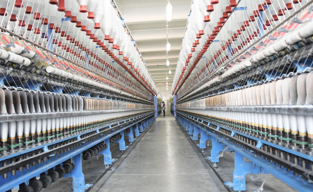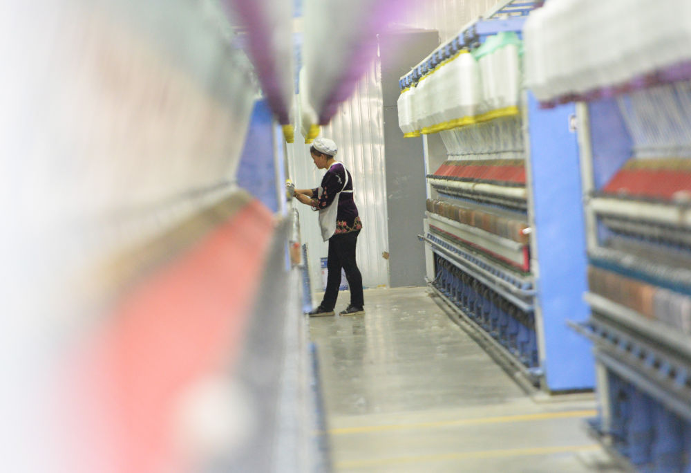 1月5日,工人在甘肃省临夏回族自治州东乡族自治县达板镇一纺织扶贫车间内作业。新华社发(史有东 摄)