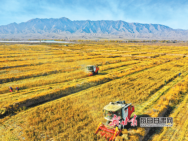甘州区花寨小米种植专业合作社的农户正在收割绿色有机无公害谷子。(资料图)新甘肃·甘肃日报通讯员王将