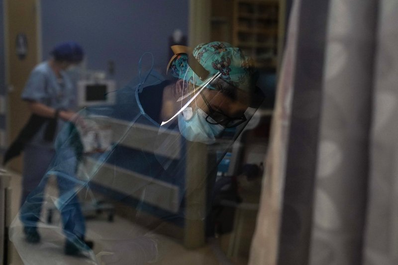 △当地时间7日,加州一家医院的护士正在照顾她的新冠肺炎患者(图片来自美联社)