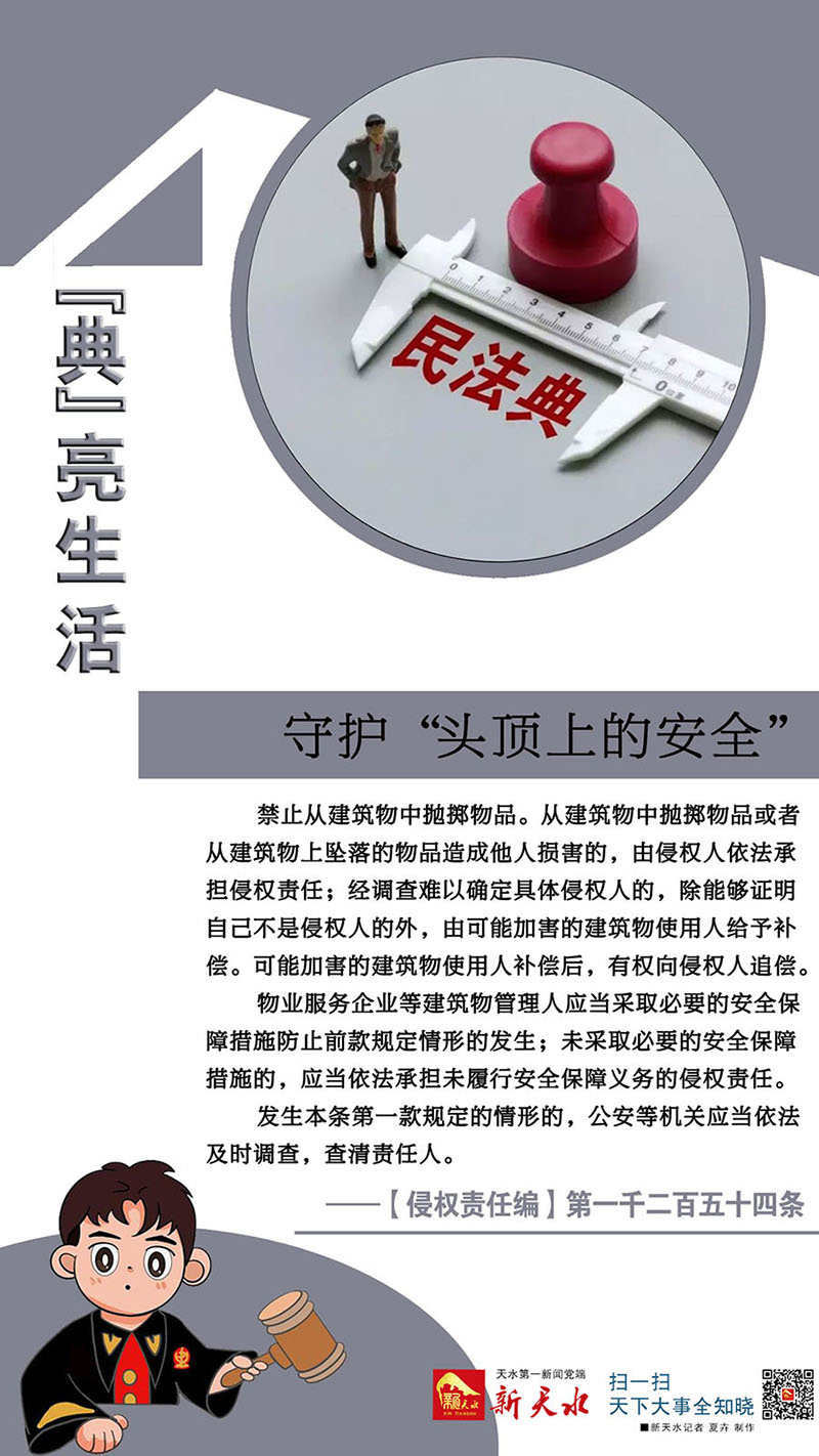 《中华人民共和国民法典》自2021年1月1日起施行,这部“社会生活的百科全书”与我们的生活息息相关、密不可分。天水日报社推出“‘典’亮生活”栏目,每天带你读三则民法典的亮点法条。今天,让我们一起来看第一百八十八条、第二百八十四条、第一千二百五十四条。