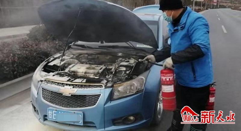 1月10日16时,天水大众公交公司驾驶员王东明驾驶37路公交车,从麦积区铁西苑公交站驶往终点站净土寺。16时36分,当公交车行驶至麦贾公路马跑泉路段时,王东明看到右前方停着一辆蓝色的小轿车,车辆前部冒着滚滚浓烟,一男子站在小轿车的后面挥着手似乎在求救。