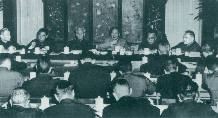 1961年1月14日至18日,中国共产党在北京召开八届九中全会。图为毛泽东在会上讲话。