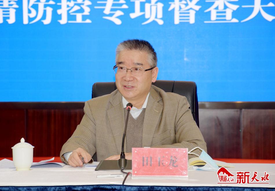 督查组组长、工业和信息化部党组成员、总工程师田玉龙指出,当前疫情防控形势依然严峻复杂,扎实做好疫情防控各项工作意义重大、责任重大。天水市要深入学习贯彻习近平总书记重要讲话和重要指示批示精神,贯彻落实全国疫情防控工作电视电话会议精神,时刻绷紧疫情防控这根弦,把好重点领域、重点环节、重点场所、重点人群防控关口,落实落细各项防控措施。要加强常态化下疫情防控能力建设,扎实开展防控培训和应急演练。要加强疫情防控队伍建设,着力提升市、县流调能力、核酸检测能力和救治能力。要不断完善集中隔离预案,确保疫情防控各项工作严格按照标准化流程和规范化操作开展。要进一步抓牢落实农村疫情防控工作,确保力度不减、“网底”不漏。要持续加强宣传教育,及时准确发布信息,切实提高群众防控意识,筑牢群防群治防线,确保各项防控措施落地见效。